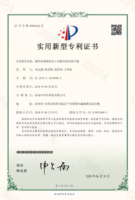 2019216192885_銅鋁水箱破碎加工用脈沖袋式除塵器