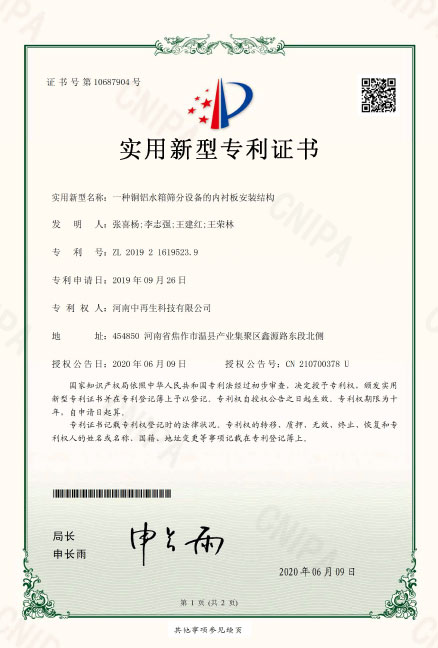 2019216195239.一種銅鋁水箱篩分設備的內襯板安裝結構